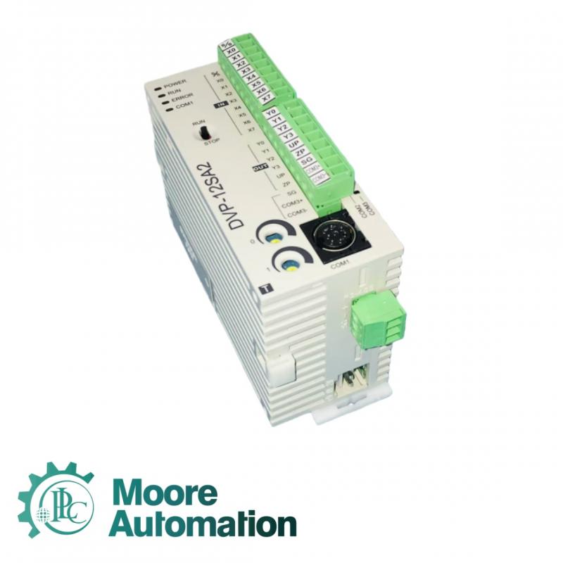 DELTA DVP12SA211T/DVP-12SA2 is a compact programmable logic controller (PLC) module launched by Delta Electronics. This module is suitable for small automation control systems, such as mechanical control, packaging equipment, building automation, energy monitoring, and other industrial control applications. DVP12SA211T provides reliable digital input/output channels, supports high-speed counting, timing, and basic logic control, and has the characteristics of high cost-effectiveness and easy installation and expansion.