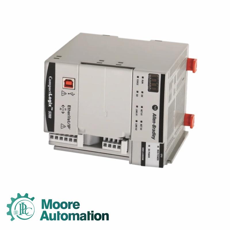 The Allen-Bradley 5069-L380ERM is a CompactLogix 5380 controller. This is a Programmable Automation Controller (PAC) that is used for general purpose and standard automation requirements. This controller also comes with embedded motion control capability as it can implement such control over Ethernet I/P. The 5069-L380ERM mainly features an 8 MB user memory coupled with a 2 GB non-volatile memory. This non-volatile may be expanded up to 32 GB or to other size as needed. Compatible Secure Digital (SD) cards for memory expansion are 1784-SD1 (1 GB), 1784-SDHC8 (8 GB),1784-SDHC32 (32 GB) and 9509-CMSDCD4 (4 GB) CodeMeter CmCard card. The 5069-L380ERM can be configured with up to 32 periodic, continuous and event task types. Each task can handle up to 1000 programs. For communication, this controller is provided with Two (2) Ethernet communication interfaces as primary communication ports and One (1) USB port for local communication and configuration purposes. Industrial communication is not supported by the USB port. The transmission rate of the Ethernet port can be configured for 10 / 100 Mbps and 1 Gbps while the USB port support 12 Mbps transmission speed. This controller supports configuration of up to 256 motion axes and 24 CIP drive axes. Motion axes may be composed of CIP Drive, Virtual, and consumed axes as well as Regenerative AC/DC Converter and Non-Regenerative AC/DC Converter axis types. |